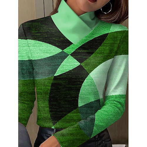 Per donna Maglietta Grafico Geometrico Astratto Elegante Vintage Moderno Manica Lunga Dolcevita Top Regolari Quotidiano Stampato Blu Arancione Verde Grigio Primavera Autunno Inverno