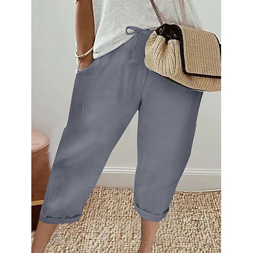 Per donna Pantaloncini ispirati al lino Chinos Moda Streetwear Essenziale Lunghezza al polpaccio Vita media Semplice Tasca Coulisse Comodità All'aperto Micro-elastico Vacanza Streetwear Quotidiano