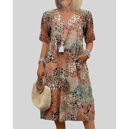 Abito Mini da Donna Abito Petite Abito a T-Shirt Abito Shift Abito Estivo Moda Vintage Attiva per Lavoro Vacanza Regolare Fit Floreale Manica Mezzo Scollo a V Rosa Blu Navy Blu Grigio