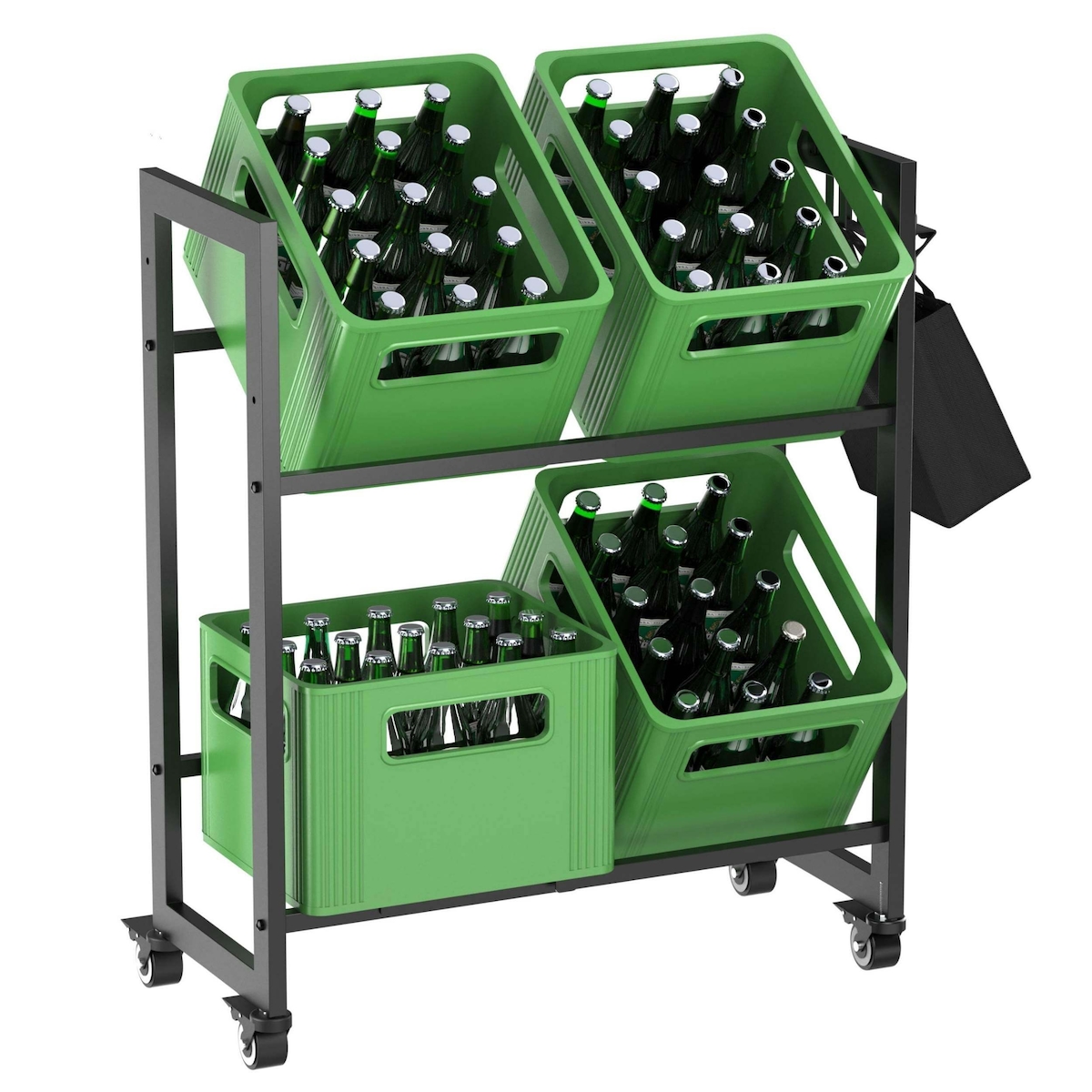 DanDiBo Getränkekistenregal 4 Kisten mit Gitter Haken Rollen Metall Schwarz 96650 Getränkeregal Kistenregal Getränke Regal