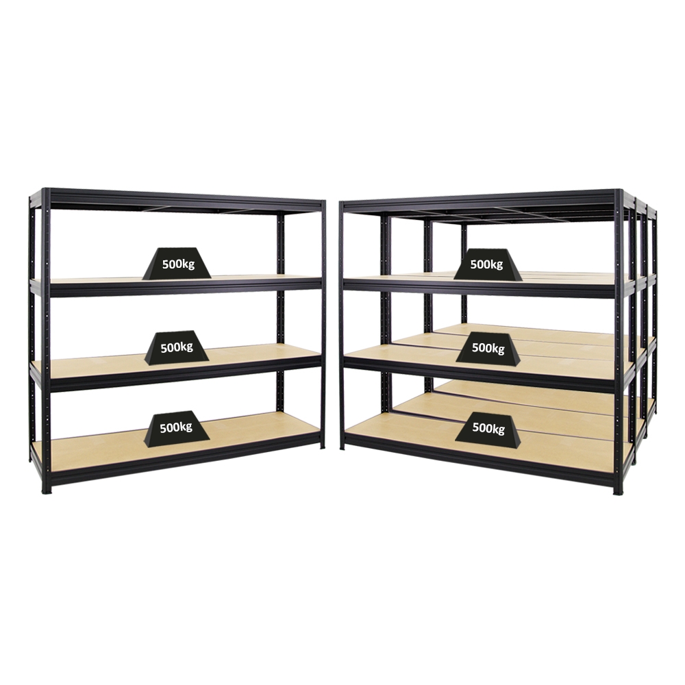 PROREGAL Mega Deal | 4x Schwerlastregal Dino | HxBxT 180x200x60 cm | Fachlast 500kg | Schwarz | Stecksystem Lagerregal Regalsystem 4 Stk.