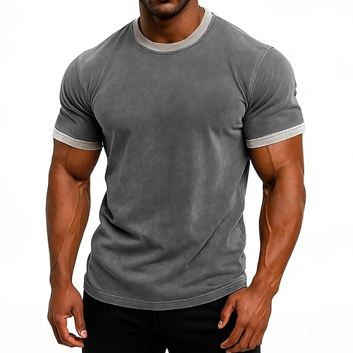 Per uomo Maglietta Manica Corta Maniche Corte Girocollo Scollo a V Estate Tutte le stagioni Tinta unica Vintage Moda Designer Blocco di colore Vacanza Streetwear Casuale Nero Blu Verde chiaro