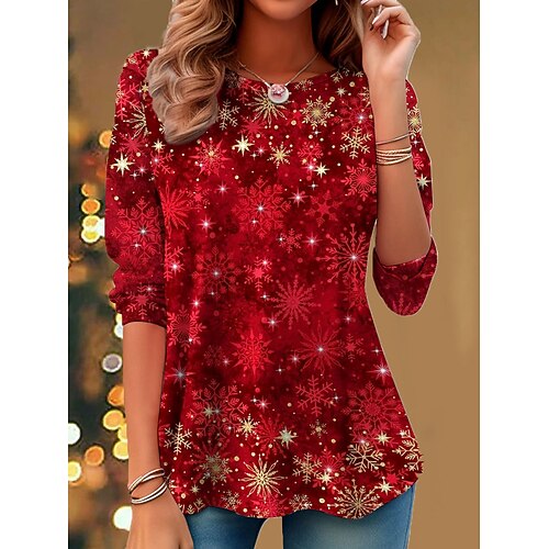 Maglia natalizia donna tunica fiocco di neve grafica vintage elegante classica maniche lunghe girocollo top regolari quotidiani stampa rosa rossa blu verde autunno inverno