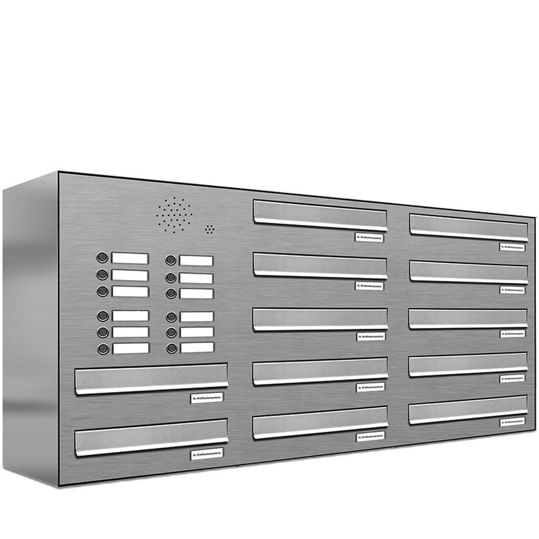 AL Briefkastensysteme 12 Fächer Premium Edelstahl Durchwurf Briefkasten Anlage für Post Post A4, modern, robust, wetterfest, Artikelnummer 132V12DZ3KS