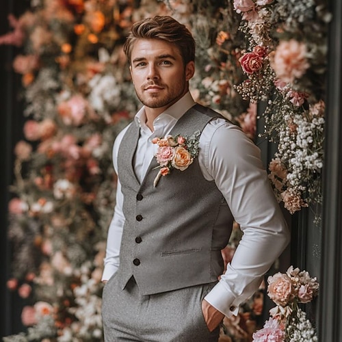 Uomo Matrimonio Affari Abiti da festa Bavero classico Grigio Moda Formale Tinta unita Vestibilità aderente 2 pezzi