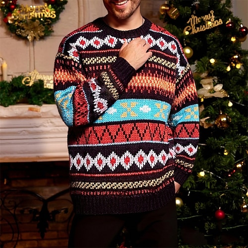 Per uomo Maglione di Natale Maglioni di Natale Maglione per le feste Maglione Maglione a maglia A Coste Maglia Top Regolari Lavorato a maglia Geometrico Girocollo Moda Essenziale Vacanza