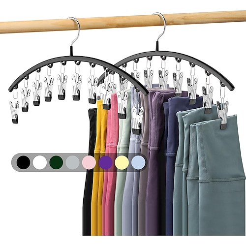 Confezione da 2/4 di organizer per leggings per armadio, grucce in metallo per pantaloni da yoga, 10 clip per 20 leggings, organizer per armadio salvaspazio con organizer e contenitori rivestiti in