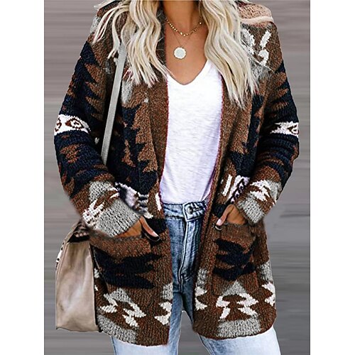 Per donna Felpa Cardigan Elegante Vintage Moda Floreale Grafico Geometrico Scollo a V Tasca Lavorato a maglia Stampato Manica Lunga Top Regolari Maglia All'aperto Quotidiano Weekend Rosso marrone Blu