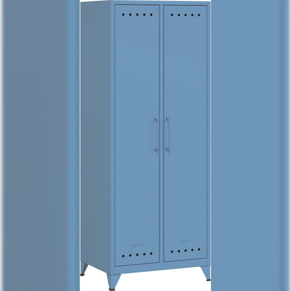 Bisley Fern Maxi Kleiderschrank aus Metall | Metallschrank im Retro-Instustrial Design in blau