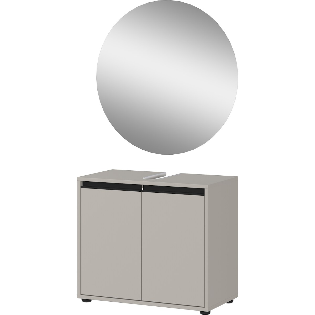 Badmöbel Set 2-tlg Soft-Close | Waschbeckunterschrank & Runder Spiegel | Steingrau matt | Serie HAMBURG Kadima Design