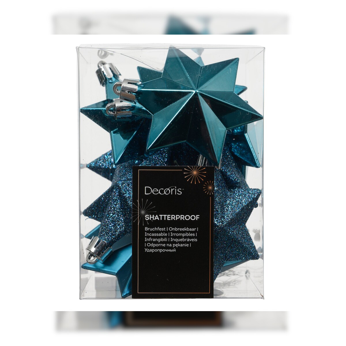 12 Sterne 7cm Christbaumschmuck Kunststoff - bruchsichere Weihnachtskugeln Weihnachtsbaumschmuck Christbaumkugeln Folkloreblau
