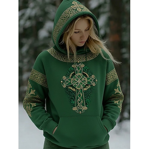 Felpa con cappuccio da donna per il Giorno di San Patrizio grafica trifoglio vintage casual maniche lunghe top regolari casual verde primavera autunno