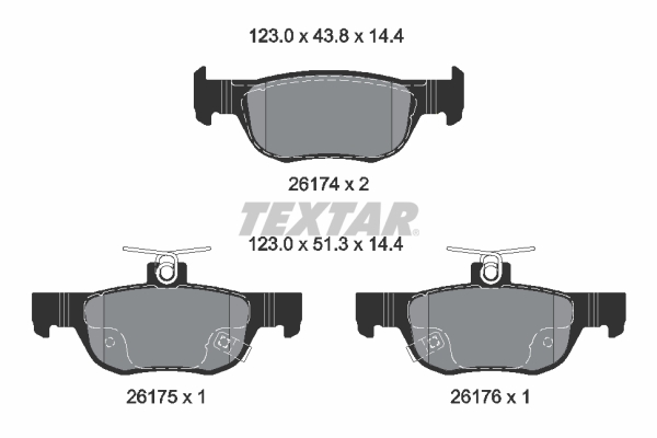 TEXTAR Bremsbelagsatz, Scheibenbremse 2617401 hinten rechts links für MAZDA BDYS2643Z DFZ52643Z DFZ52643ZA