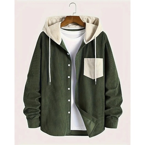 Per uomo Camicia di Velluto a Coste Testurizzato Casuale Sportivo Bavero Manica Lunga Moda Essenziale Blocco di colori Patchwork Bottoni Primavera Autunno Autunno Inverno Vestibilità regolare Nero