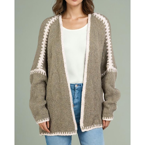 Per donna Felpa Cardigan Streetwear Casual Blocco di colori Girocollo Patchwork Lavorato a maglia Manica Lunga Top Regolari Maglia Ferie Uscire Weekend Nero Rosa Autunno Inverno