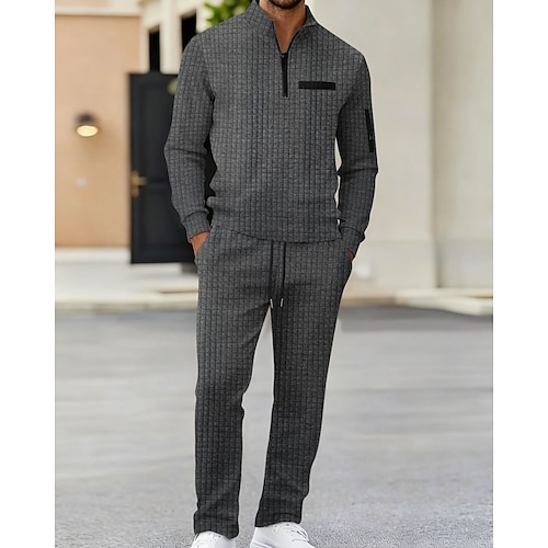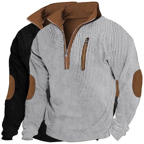 Per uomo Maglietta Maglietta a Maglia Waffle Camicia a Maniche Lunghe Manica Lunga Zip a un quarto Inverno Primavera Autunno Blocco di colori Testurizzato Moda Designer Essenziale Patchwork