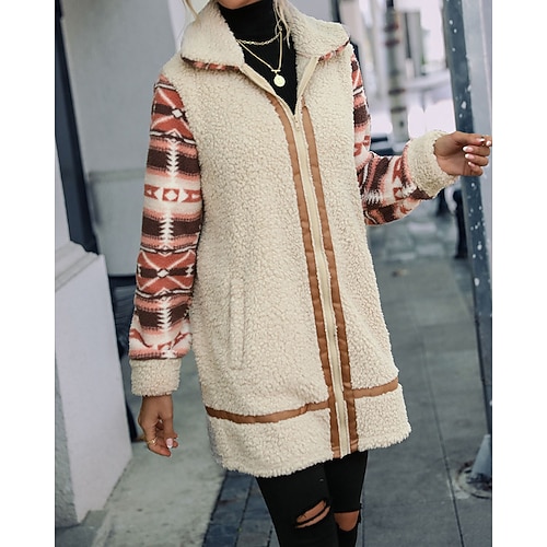 Per uomo Cappotto Invernale Giacca in Pile Giacca Casual Quotidiano All'aperto Calore Termico Jacquard Tasca Autunno Inverno Bandiera Blocco di colori Streetwear Quotidiano Collo alla coreana Regolare