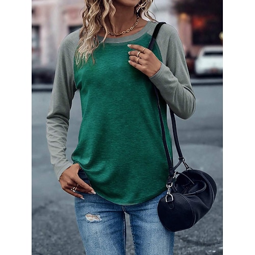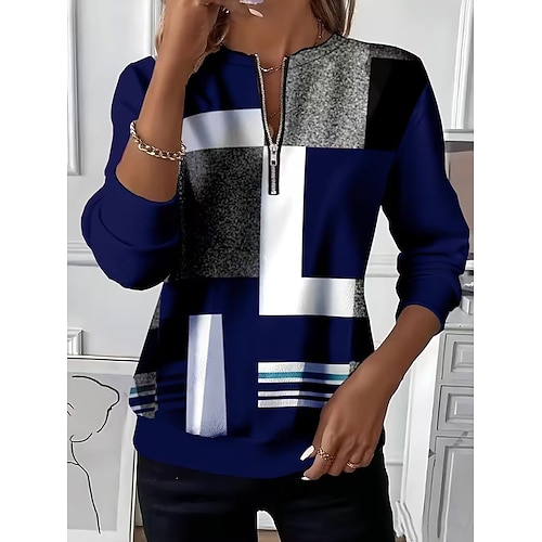 Per donna Felpa Pullover Grafico Geometrico Blocco di colori Moda Casual Manica Lunga Girocollo Top Regolari Casuale Streetwear Abbigliamento Quotidiano Stampato Nero Rosso Cachi Grigio Autunno