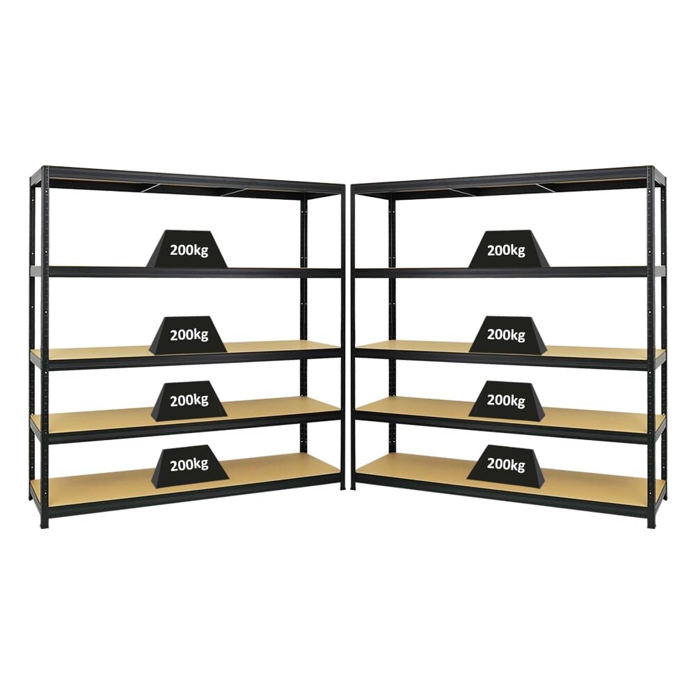 PROREGAL Mega Deal | 2x Schwerlastregal Giant Elephant | HxBxT 180x180x45cm | Fachlast 200kg | Schwarz | Garagenregal, Lagerregal, Steckregal