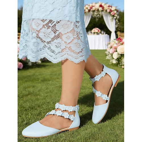 scarpe basse da donna con cinturino floreale azzurro chiaro - eleganti scarpe da damigella con punta a punta per matrimoni all'aperto in giardino, cerimonie sul prato eventi primavera estate