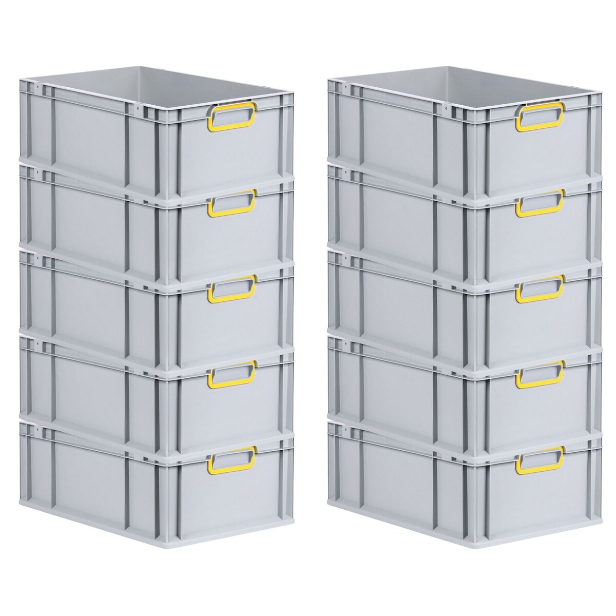 PROREGAL 10x Eurobox NextGen Color | HxBxT 22x40x60cm | 44 Liter | Griffe gelb geschlossen | Verstärkter Boden | Eurobehälter