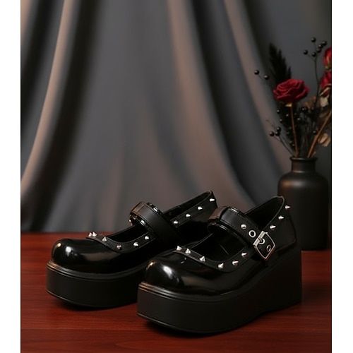 scarpe mary jane nere con plateau da donna e cinturini borchiati – tacchi spessi in stile punk gotico per Halloween, cosplay e outfit di moda alternativa
