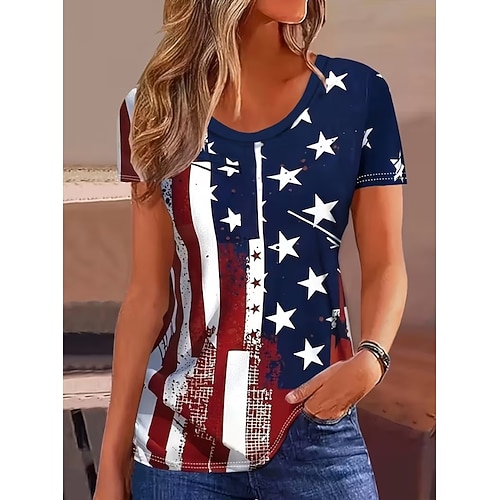 Giorno dell'Indipendenza Americana Per donna Maglietta Grafico Bandiera Vintage Moda Elegante Manica Corta Girocollo Top Regolari Quotidiano Weekend Stampato Blu Bianco Estate Primavera
