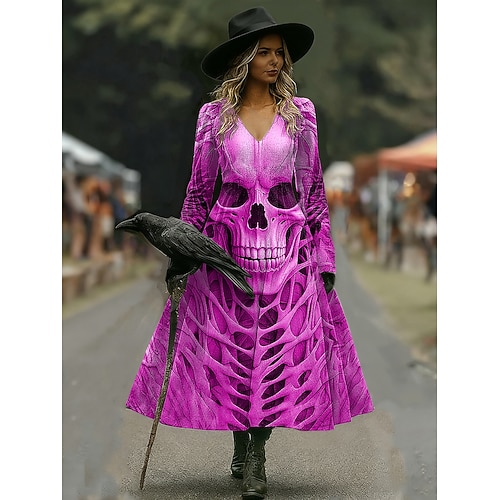 Abito midi da donna con stampa teschi taglio A vacanza casual