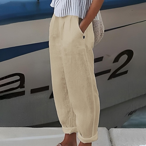 Per donna Taglie Forti Pantaloni in cotone e lino Semplice Casual Comfort Colore Puro Micro-elastico Casa Streetwear Bianco Blu Verde Cachi Estate Primavera