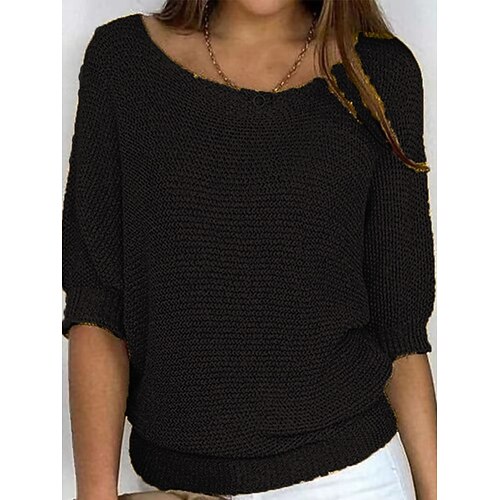 Per donna Felpa Maglione Quotidiano Elegante Casual Tinta unica A Coste Girocollo Lavorato a maglia Manica 3/4 Top Regolari Maglia All'aperto Quotidiano Nero Bianco Estate Primavera