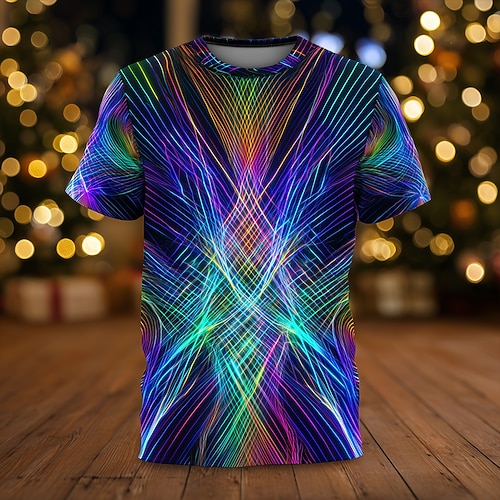 Capodanno Per uomo Linea Fuochi d'artificio Maglietta Manica Corta maglietta Stampa 3D Girocollo Camicia Esagerato Designer Artistico Feste Streetwear Club Blu 3# Blu 2# Blu 1# Autunno Inverno