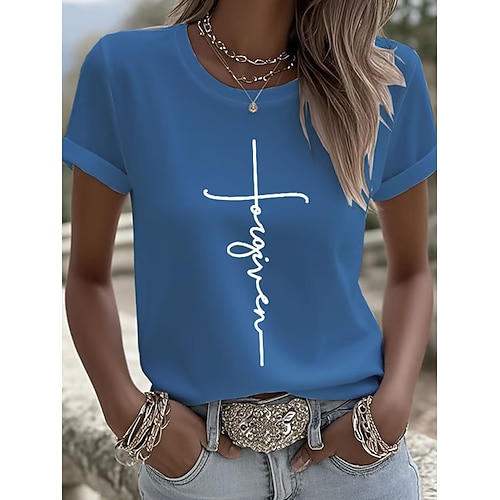 Per donna Maglietta Grafico Lettera Vintage Moda Elegante Manica Corta Girocollo Top Regolari Quotidiano Weekend Stampato Blu Bianco Rosso Grigio Estate Primavera Autunno Inverno