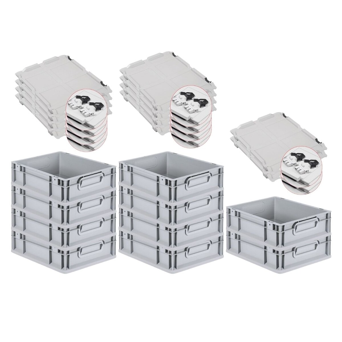 PROREGAL 10x Eurobox NextGen Grip mit Scharnierdeckel & schwarzen Verschlüssen | HxBxT 12x30x40cm | 11 Liter | Griffe geschlossen | Glatter Boden