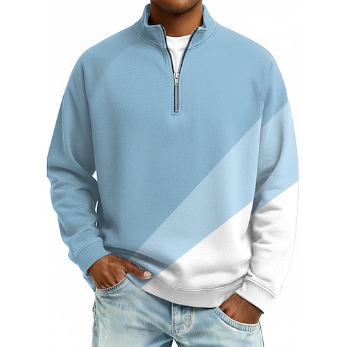 Per uomo Blocco di colori Polo con zip Manica Lunga Magliette polo Colletto alla coreana Casual Scuola Athleisure Ferie Abbigliamento quotidiano Stampa 3D Polo con cerniera a un quarto Primavera