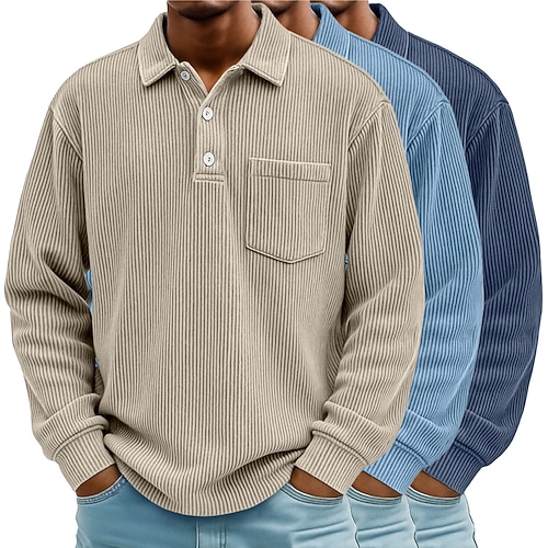 Per uomo Camicia di Velluto a Coste Polo Casuale Sportivo Bavero Manica Lunga Moda Essenziale Blocco di colori Bottoni Caldo Primavera Autunno Vestibilità regolare Nero Blu chiaro Rosso Blu scuro