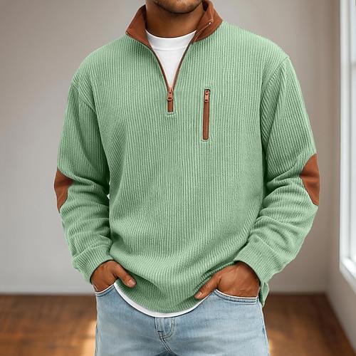 Per uomo Blocco di colori Gradiente di Colore Nido d'ape Felpa Moda Quotidiano Casual Collo Alto Casa All'aperto Abbigliamento casual alla moda Ufficio Blu Verde Blu scuro Grigio Bottoni Autunno
