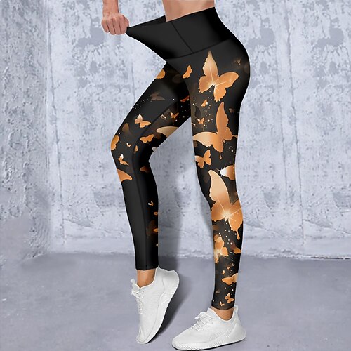 Per donna Pantaloni da yoga Sollevamento glutei Controllo addominale Vita Alta Allenamento in Palestra Corsa Fitness Leggings corti Farfalla Giallo Rosso Blu Autunno Inverno Gli sport Abbigliamento