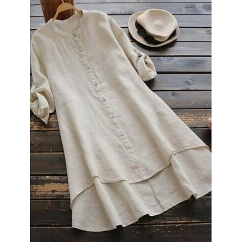 Per donna Camicie di cotone e lino Blusa Semplice Elegante Vintage Manica Lunga Asimmetrico Top Regolari Quotidiano Ferie Uscire Patchwork Bottoni Blu Bianco Cachi Estate Primavera Autunno