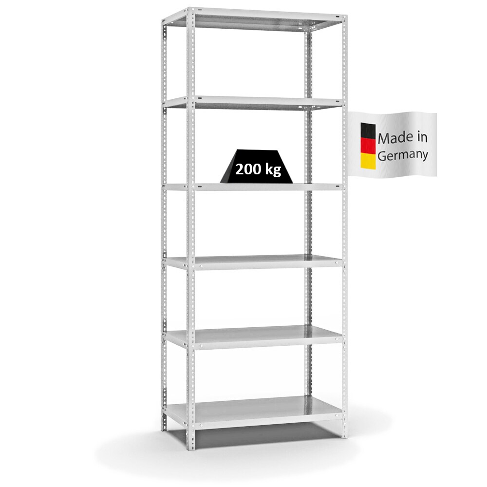 PROREGAL Fachbodenregal Schraubsystem | Grundregal | HxBxT 250x100x50cm | 6 Ebenen | Fachlast 200 kg | Beidseitig nutzbar | Lichtgrau