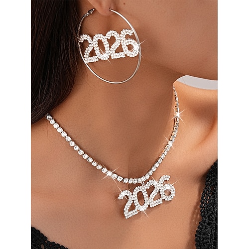 set di collana e orecchini in lega da donna, design scintillante in cristallo 2026, perfetto per feste e celebrazioni