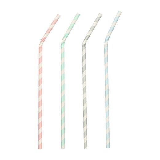 Papstar Trinkhalme, Papier "pure" Ø 6 mm · 22 cm farbig sortiert "Stripes" biegbar. 10 x 100 Stück