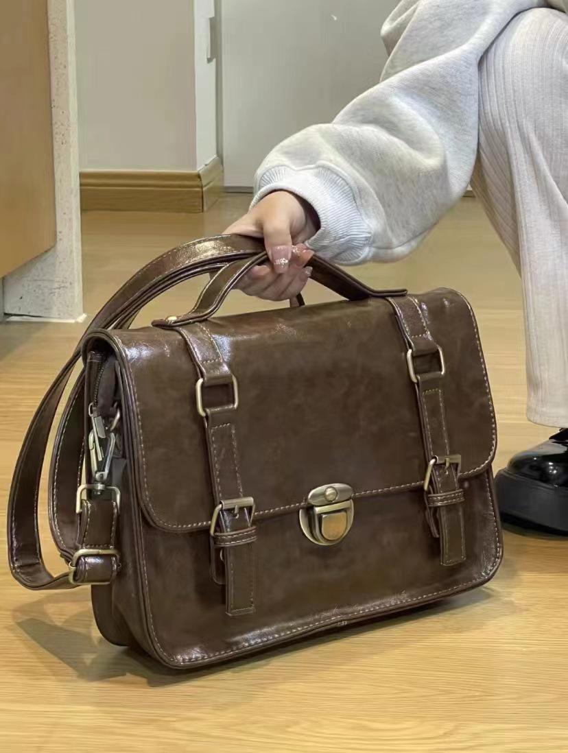 Sac bandoulière rétro à boucle automne hiver - Style uniforme JK japonais, sac de ville décontracté noir