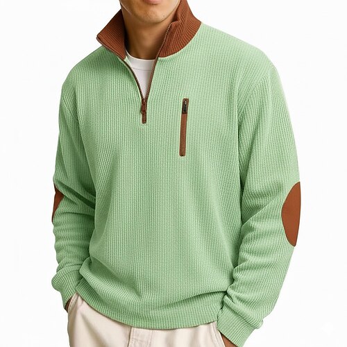Per uomo Camicia di Velluto a Coste Maglietta Camicia a Maniche Lunghe Camicie da uomo con toppe sui gomiti Manica Lunga Con cerniera Estate Autunno Autunno Inverno Blocco di colori Quotidiano