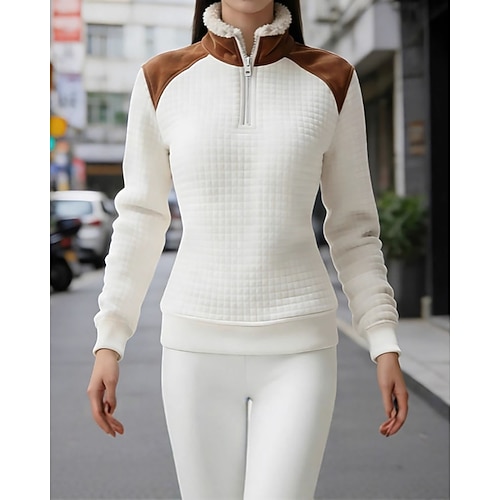 Per donna Felpa Pullover Blocco di colori Elegante Vintage Moda Manica Lunga Collo Alto Top Regolari Casuale Abbigliamento Quotidiano Ferie Cerniera Kaki Beige Autunno Inverno