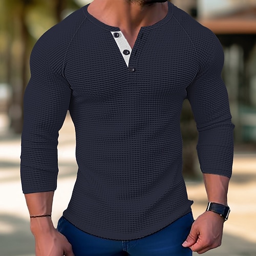 Per uomo maglietta Camicia Henley Waffle Camicia Henley T-shirt Maglia a maniche lunghe Liscio Henley Strada Da mare Manica lunga Abbigliamento Poliestere Di tendenza Originale Essenziale