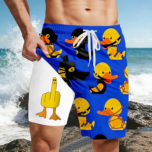 Per uomo Cartoni animati Anatra Dito medio Pantaloncini foderati Pantaloncini da bagno 2 in 1 Pantaloncini da mare Misura del girovita medio Hawaiano Divertente Vacanza al Mare Tasche Laterali Con