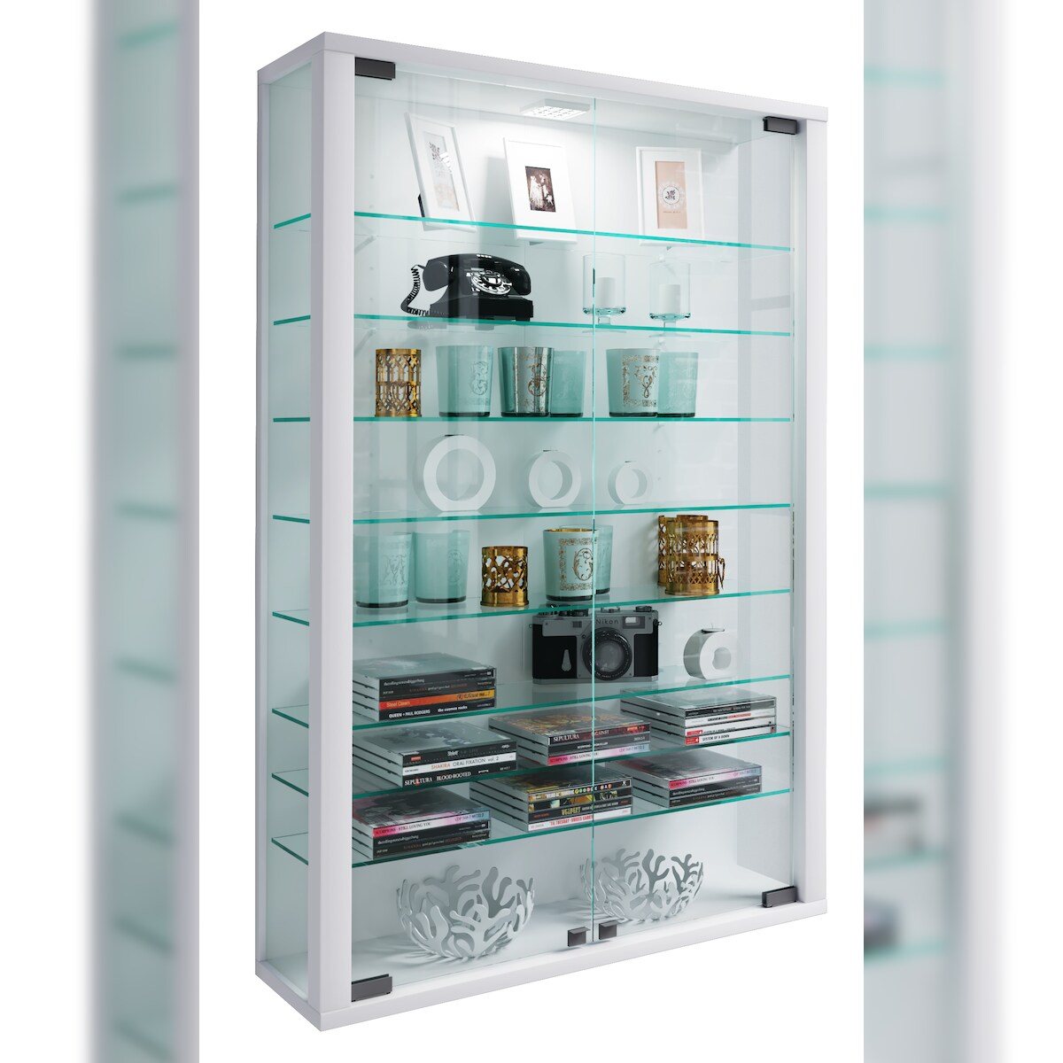 VCM Wandvitrine Vitrosa Weiß H. 91 x B. 59 x T. 18 cm