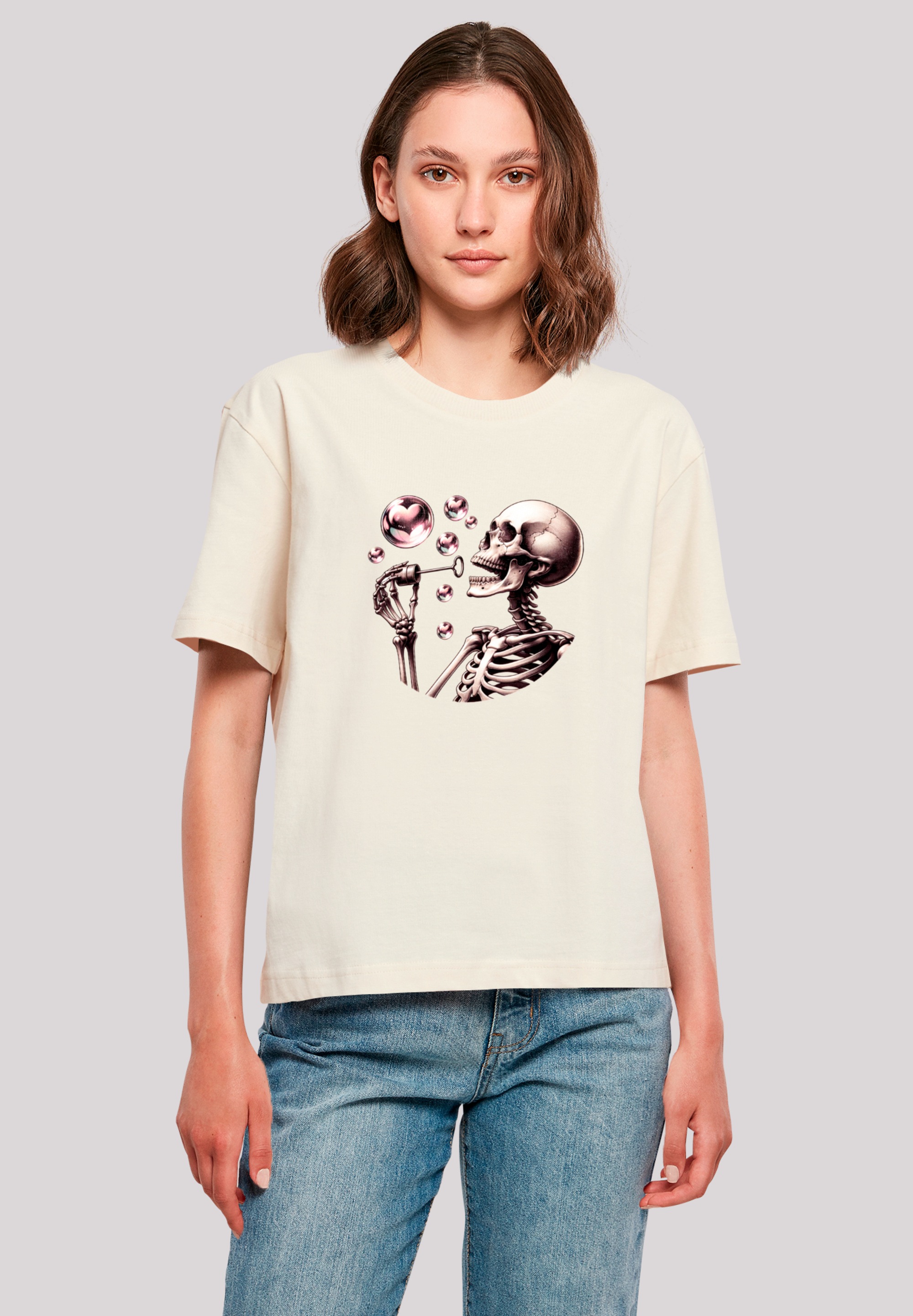 T-Shirt F4NT4STIC "Niedliches Goth Skelett Herz Seifenblasen", Damen, Gr. L, weiß (sandweiß), Obermaterial: 100% Baumwolle, casual, oversize, Rundhals, Kurzarm ohne Bündchen, Shirts, Premium Qualität