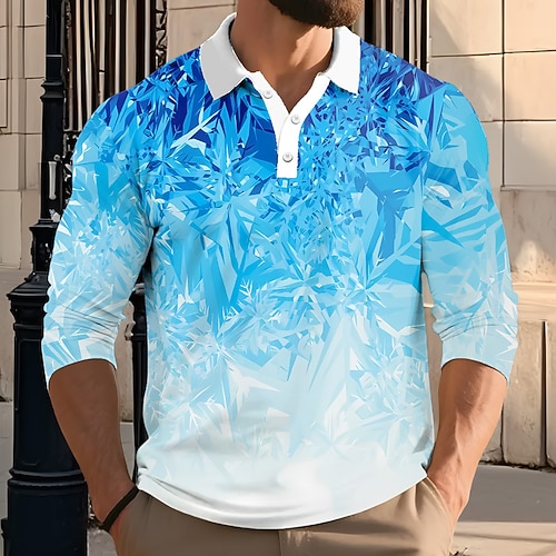 Per uomo Sfumatura Magliette Polo a Nido d'Ape Manica Lunga Magliette polo Bavero Casual Scuola Athleisure Abbigliamento quotidiano Stampa 3D Primavera Autunno Inverno Nero Blu marino Azzurro cielo