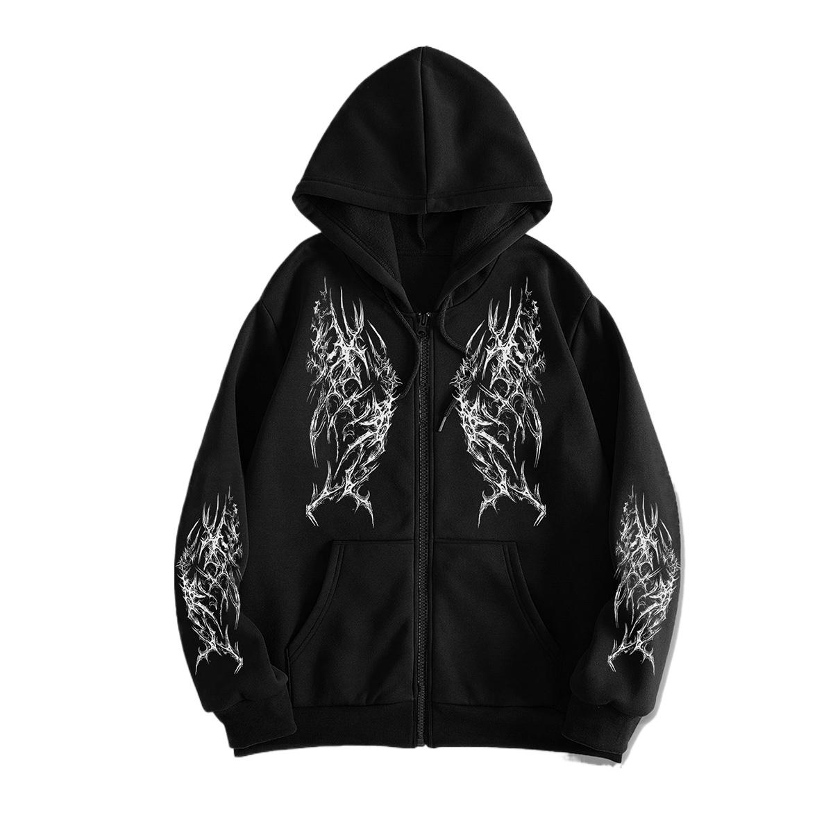 Herren Zip-Up Hoodie - Sweatshirts für Männer Y2K Vintage Langarm-Sweatshirt Streetwear Pullover mit Tasche cm schwarz